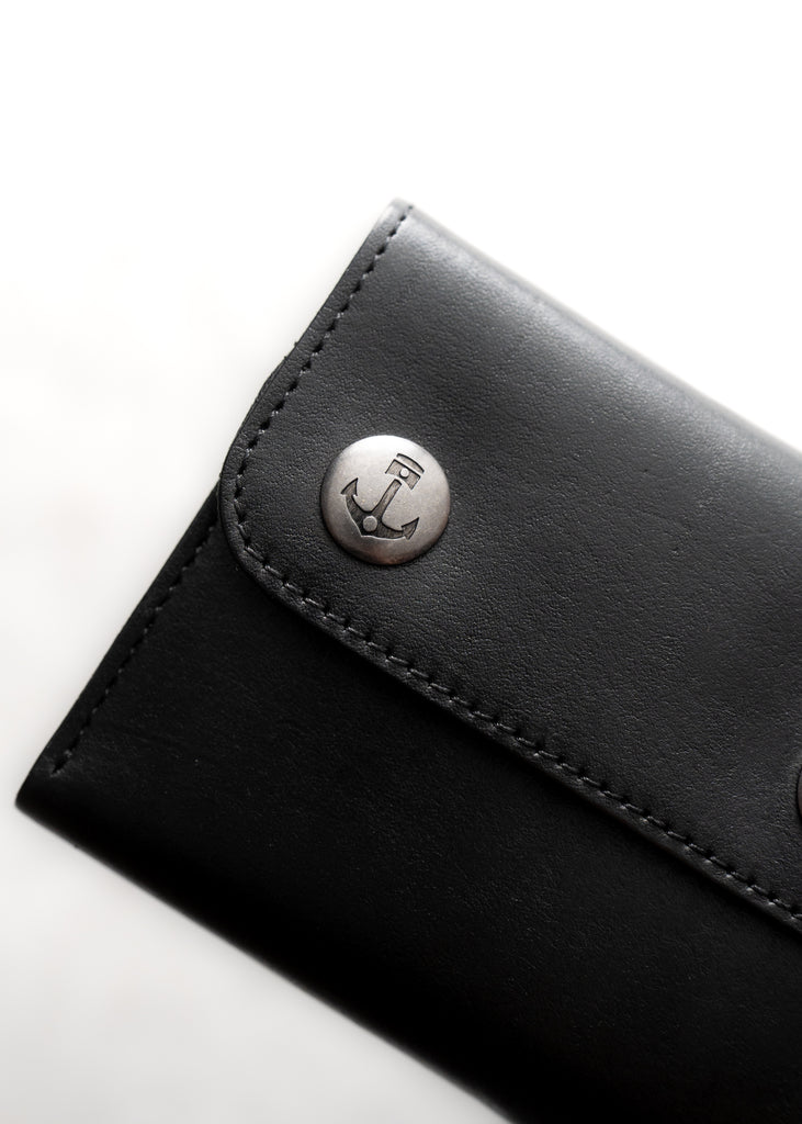 A more refined take on our rugged tri-fold, the Santa Fe Leather Wallet strips things back to the essentials. Crafted entirely from black vegetable-tanned leather, it offers the same layout as its denim sibling—without the embroidery. It's secured by a brass snap closure and finished with a removable braided leather tassel. Classic, compact, and built to last.