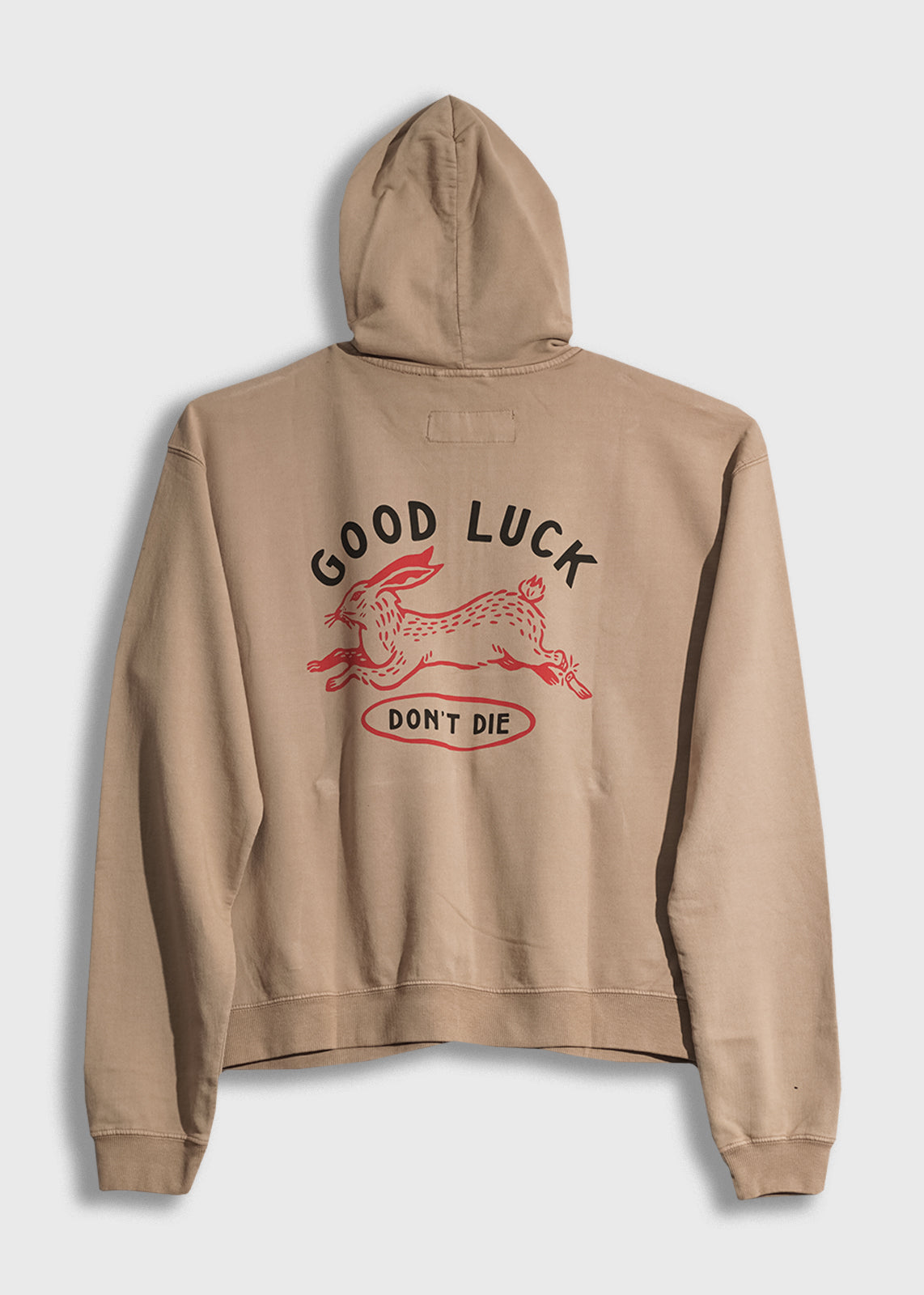 The Good Luck Zip Hoodie is perfect for everyday use. Made of 100% Cotton, and features a heavy duty front zipper. The two large front pockets make it easy to grab what you need on-the-go.
