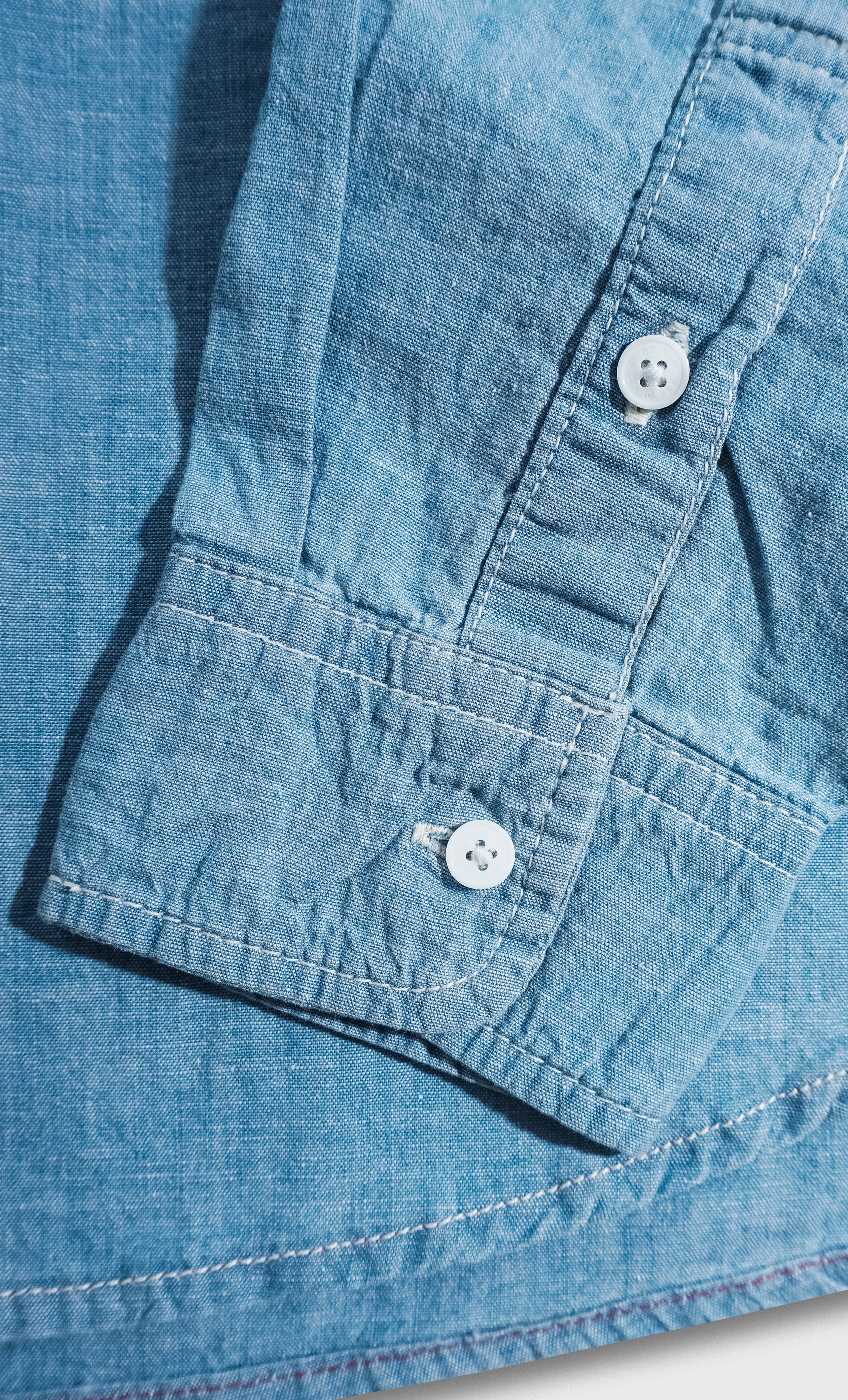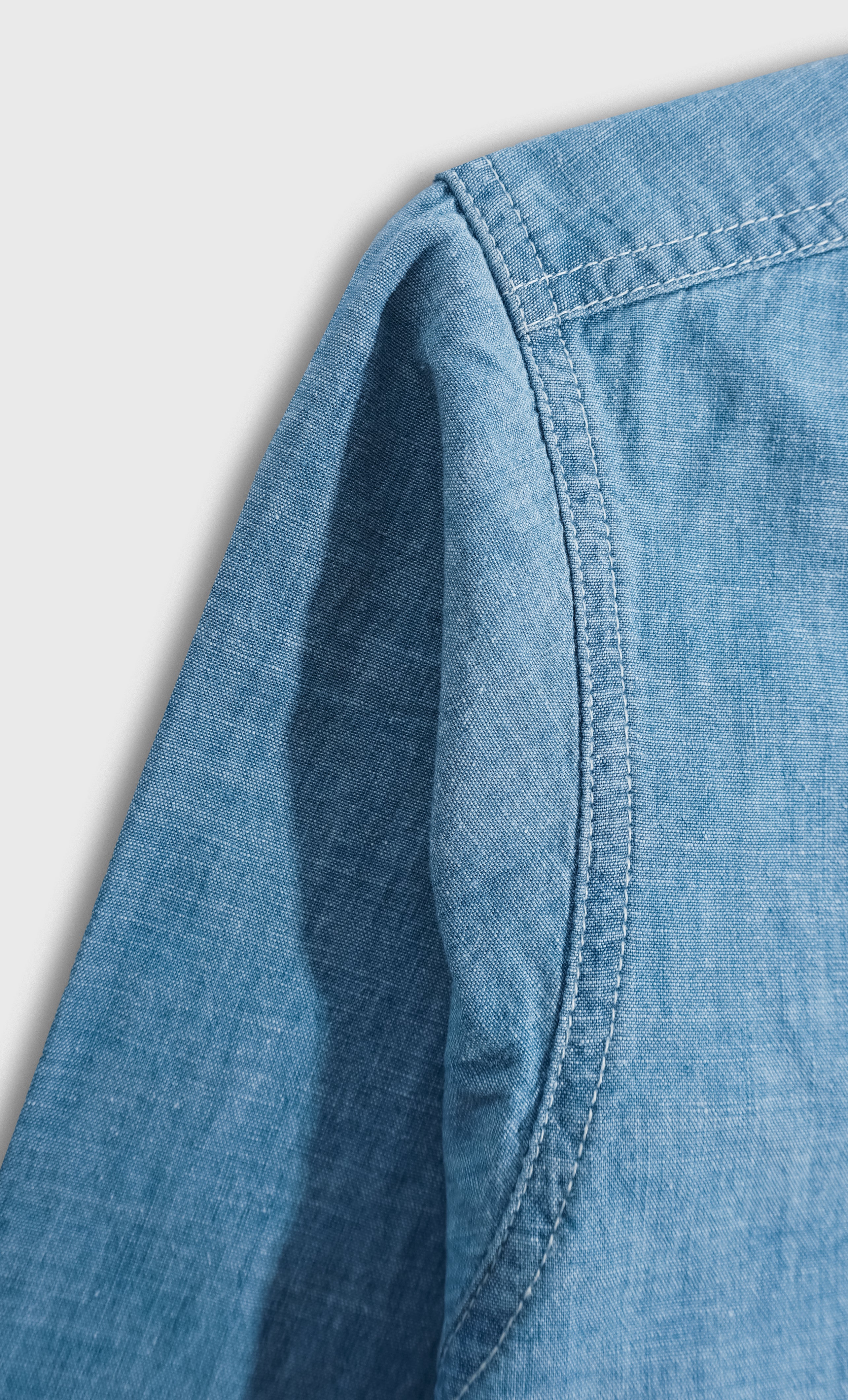 - Triple-needle felled stitching on critical points of shoulders, arm pits and sides