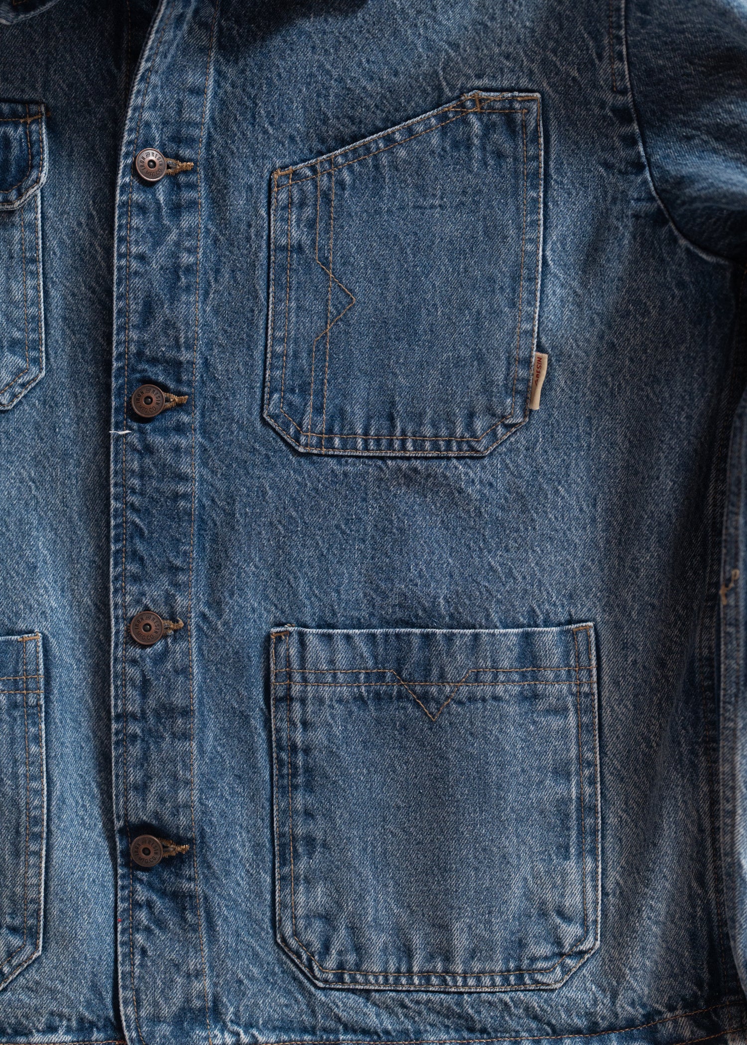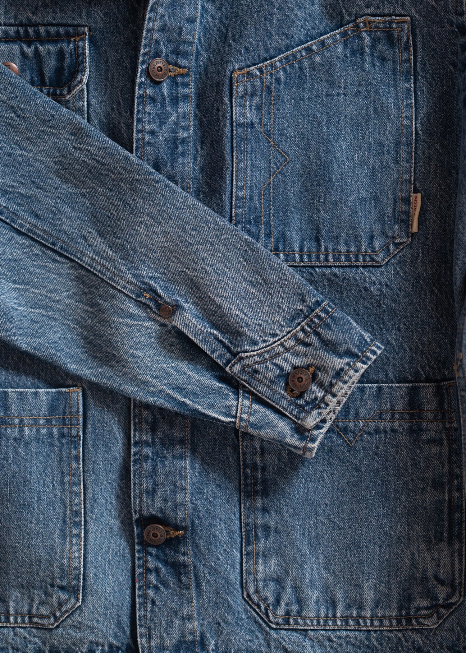 Inspired by the hardworking chore coats of the past, the Kettle Jacket is built for utility and wear. Cut from durable denim that softens with every mile, it’s designed with four patch pockets for all the essentials and finished with reinforced stitching throughout. The simple button front and timeless collar keep it rooted in classic workwear, while the easy fit makes it just as useful on the job as it is on the weekend.