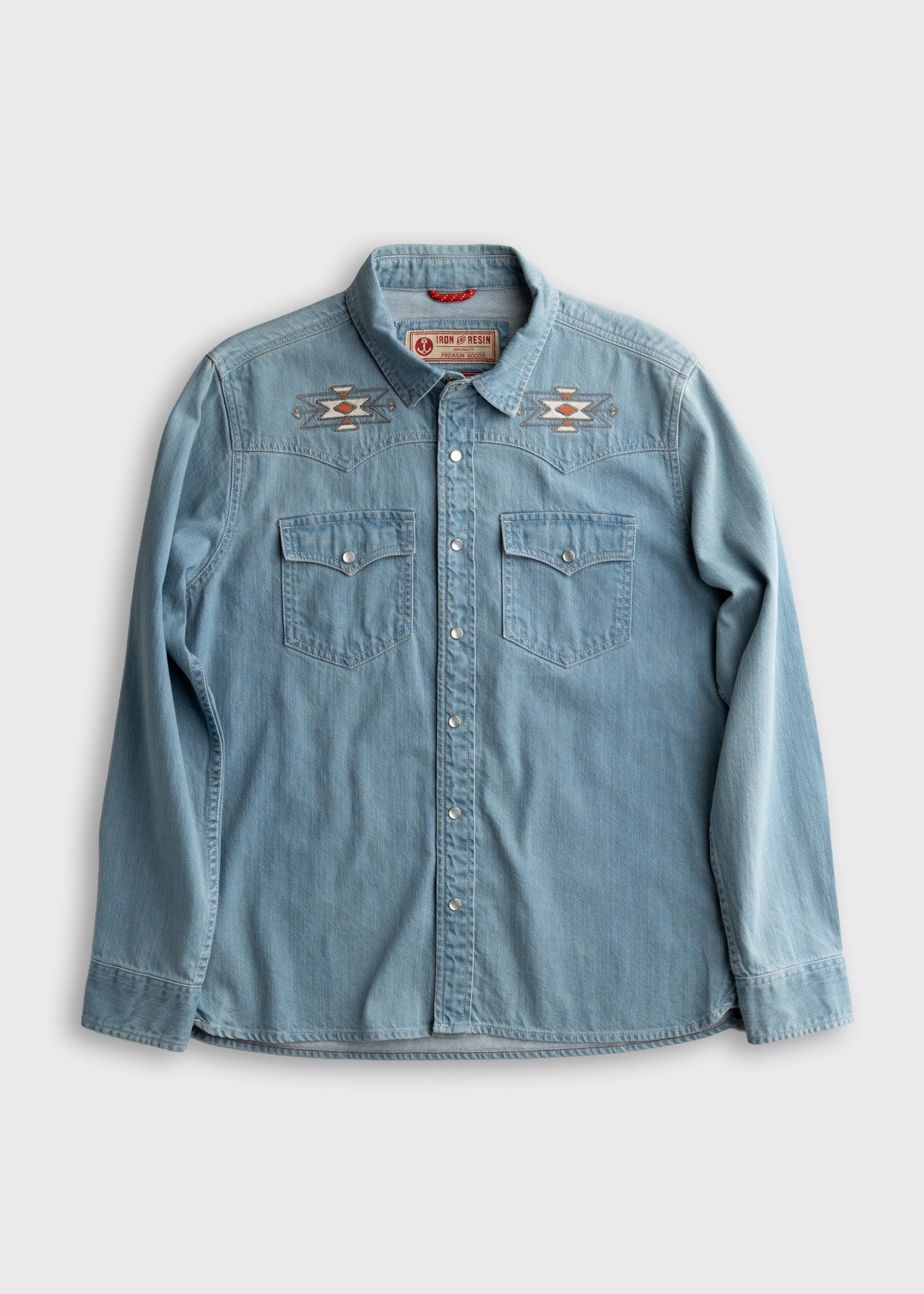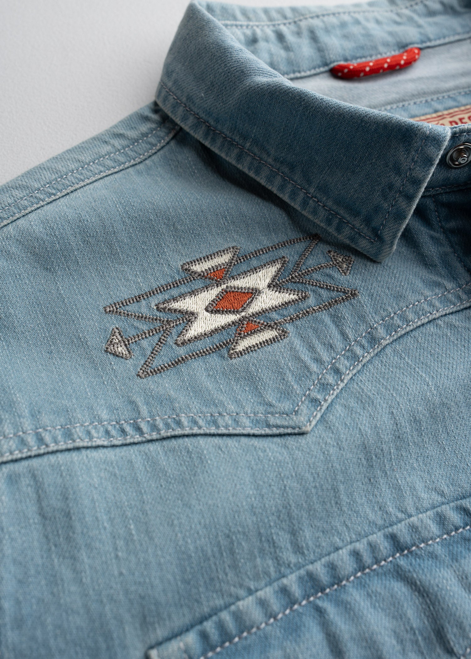 Ein Klassiker des Lebens im Westen und unsere Interpretation des modernen Western-Druckknopfhemdes. Mit Western-Schulterpasse und individueller Südwest-Stickerei. Wir haben dieses Hemd mit unserer intensivsten Waschung versehen, damit es sich anfühlt, als wäre es jahrelang im Westen unterwegs gewesen. Dieses Hemd passt gut zu ein paar Ihrer Lieblings-Cervezas.
