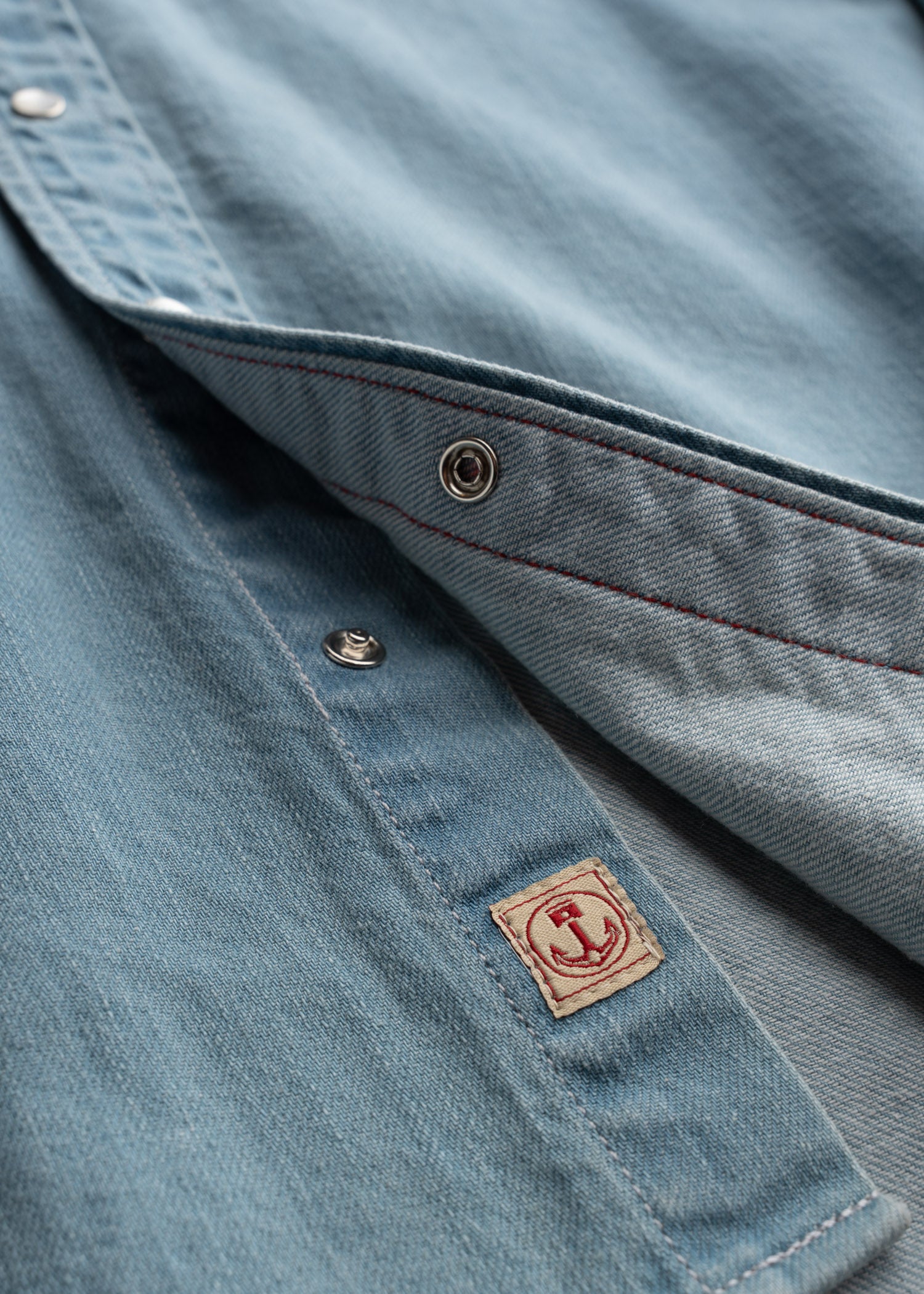 - Doppelte Brusttaschen mit Klappe oben und Druckknopfverschluss mit Perlmutt