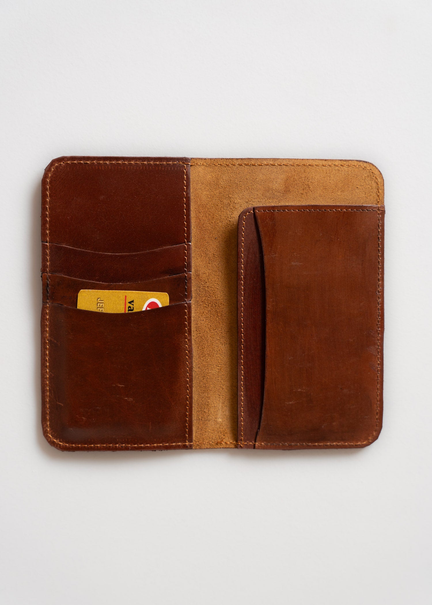 Built for long hauls and dusty trails, the Explorer Wallet is a timeless long-style wallet designed with utility and character in mind. Crafted from rich, vegetable-tanned leather and finished with antiquated brass hardware, it features a secure snap closure and a removable leather tassel for a bit of charm. Inside, it’s all function: a dedicated ID window, four card slots, and an open section for cash or receipts. It's the kind of wallet that picks up a patina and a story as you go.