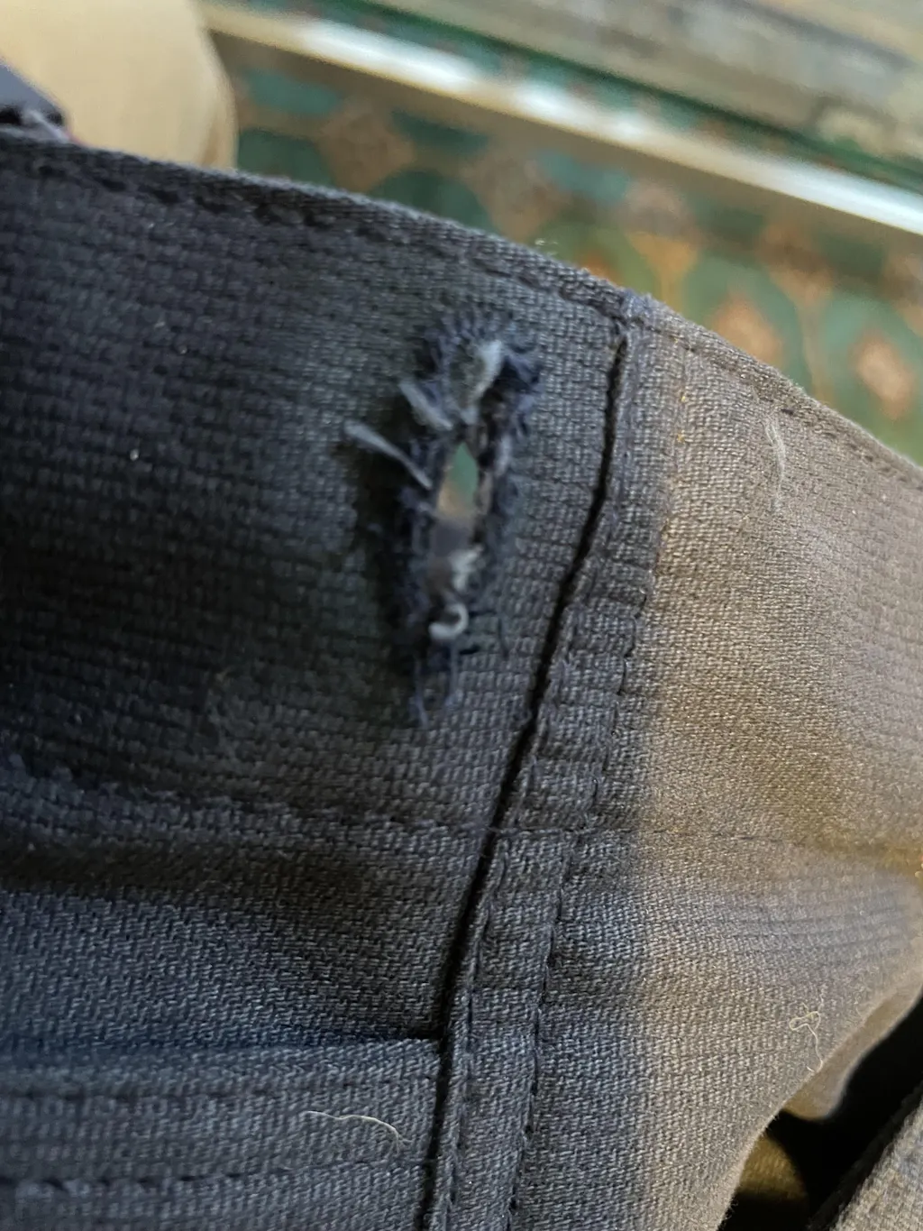 - Two exterior side-welt pockets